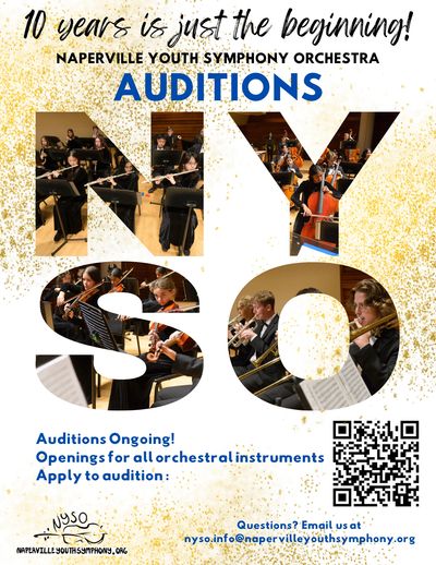 Membership in the Naperville Youth Symphony Orchestra is determined by audition. Current members of the organization do not need to re-audition to maintain membership in their current orchestra. All current musicians will be required to do a seating audition in the fall and spring.